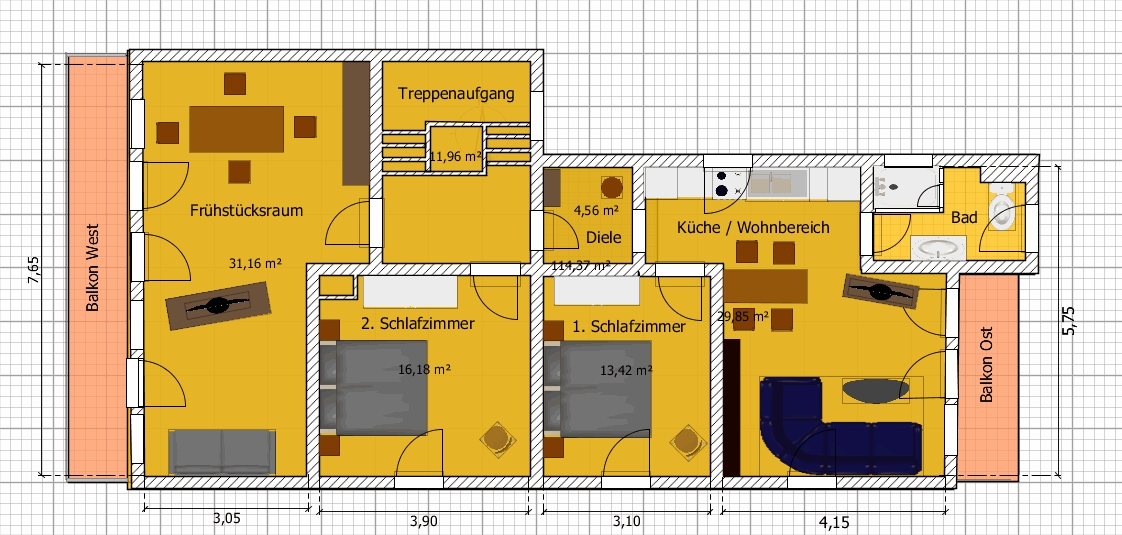 Die Ferienwohnung im 1. OG unseres Hauses bietet auf großzügigen 60m²: